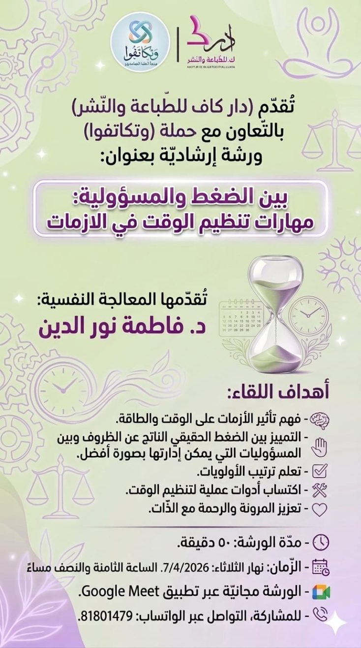 ورشة: بين الضّغط والمسؤوليّة.. مهارات تنظيم الوقت في الأزمات