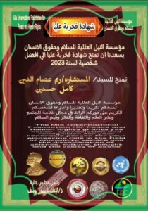 وقد جاء هذا التكريم الاستثنائي خلال الفعالية العلمية التي اقامها مركز المصريين للدراسات بالتعاون مع أكاديميات الدكتور عادل عامر رئيس المركز في مصر لغرض اختيار افضل 100 شخصية عربية في المجال العلمي، والإنساني، والخدمي.