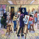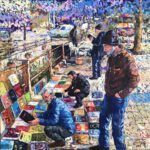 ما أن تدخل معرض الفنانة خولة الطفيلي حتى تجد الحياة اليومية المعاشة ببساطتها وعفويتها، فتشعر أنك أمام محترفة تنقل إليك الحِرَف التراثية اللبنانية من الخياطة، إلى التنجيد، إلى الوراق الذي يبيع الكتب على قارعة الطريق، إلى بائع الزهور، إلى النساء اللواتي يجتمعن على فنجان قهوة.