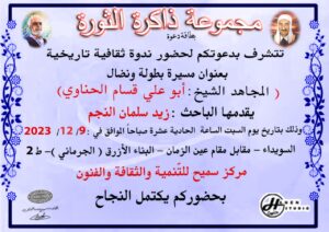 وذلك مساء يوم الثلاثاء في 12 كانون الول الحالي، الساعة 7 ، عبر برنامج واتس. في منصة حرمون.