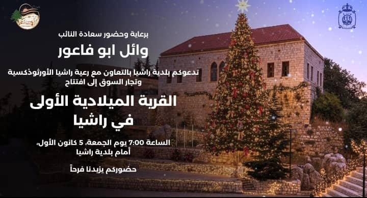 برعاية النائب وائل أبو فاعور وحضوره، دعت بلدية راشيا بالتعاون مع رعية راشيا الأرثوذكسية وتجار سوق راشيا الأثري، لحضور افتتاح القرية الميلادية الأولى في راشيا.