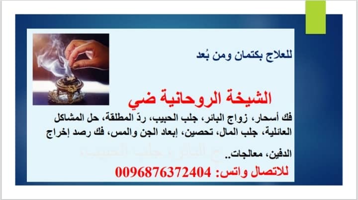 تقدّم الشيخة الروحانية ضي باقة من الخدمات الروحية: فك أسحار، زواج البائر، جلب الحبيب، ردّ المطلقة، حل المشاكل العائلية، جلب...