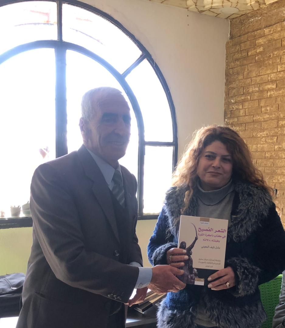 وتكريم باقة من الأعلام بإهدائهم نسخاً من الكتاب “الشعر الفصيح في موسوعة ذاكرة الثورة” للكاتب عادل نايف البعيني، المعقودة الندوة لإشهاره، ومنهم :