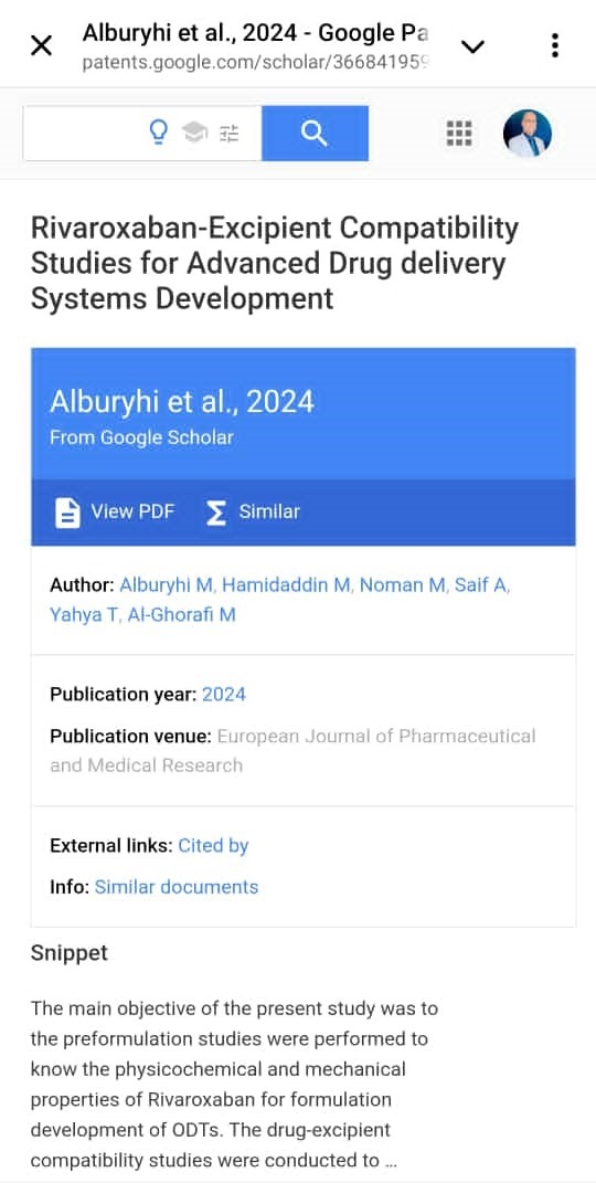 الخاص بتسجيل بيانات الاختراع، أبحاث علمية لفريق أكاديمي من جامعة صنعاء تتعلق بتطوير وصناعة الدواء وأنظمة توصيل الدواء وذلك ضمن قائمة الأبحاث المنشورة في الموقع.