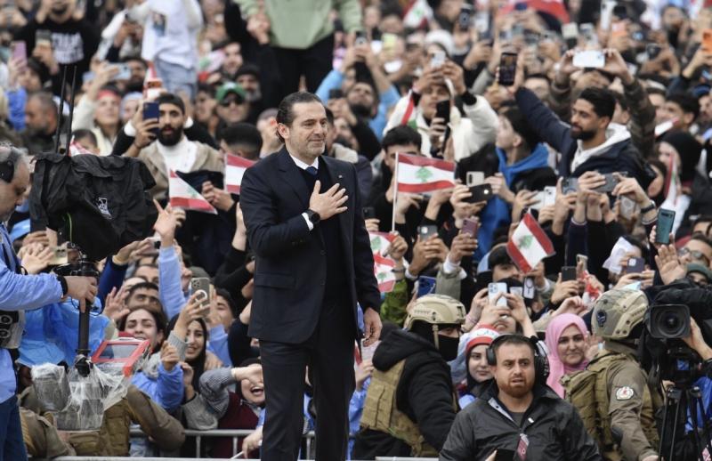 وبعد تحية الجماهير المحتشدة، عاد الحريري ليقرأ الفاتحة على أرواح باقي الشهداء، وسط استمرار الهتافات المؤيدة له.