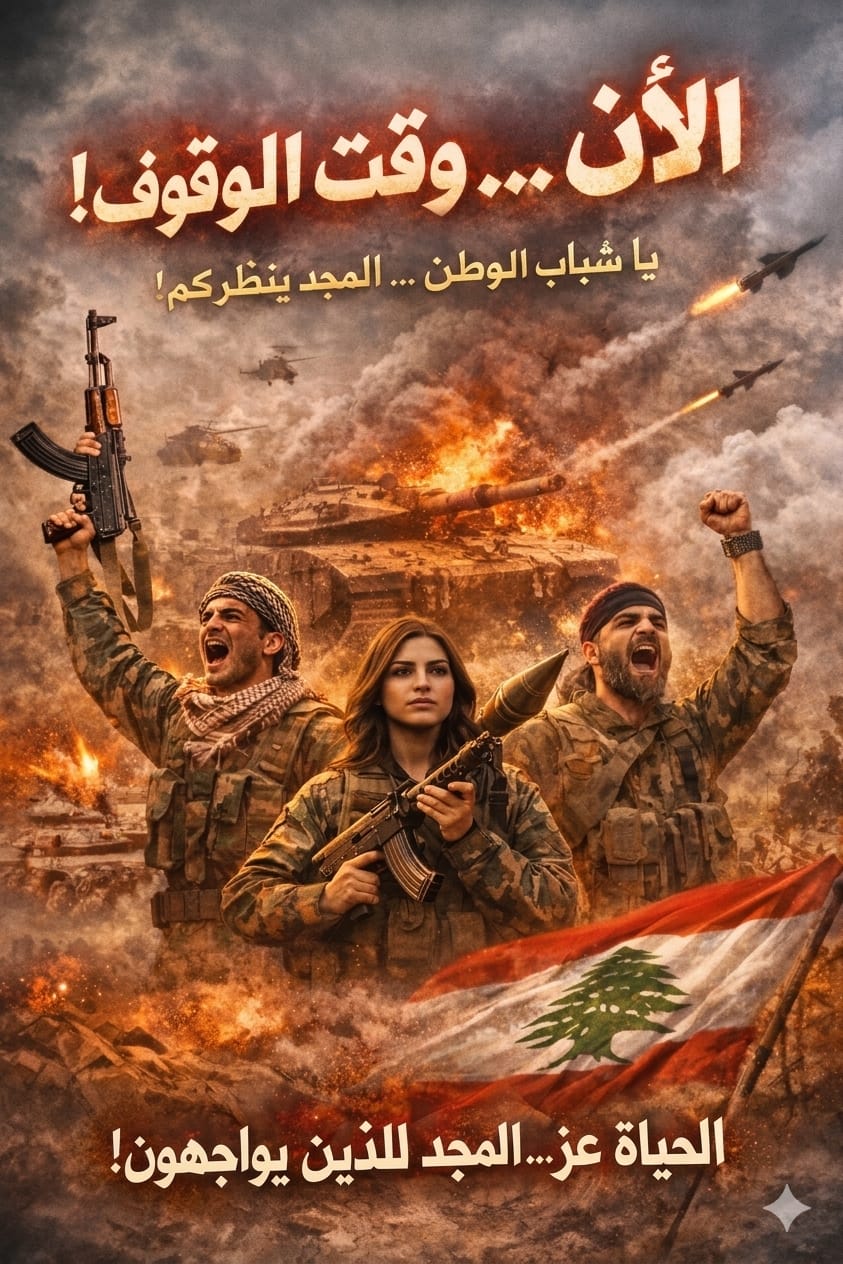 هذه دعوتكم: ارتقوا بالهمّة، وكونوا أصحاب المبادرة، احملوا راية الشجاعة في أيديكم، وكونوا في الصفوف الأمامية حيث يُصنع التاريخ! الجبهة لمن يملك الجرأة، لمن يضع قلبه وروحه على الأرض، ومن يعرف أن الانتماء للوطن يُترجم بالفعل قبل الكلام. كل لحظة هي فرصة لتكتبوا اسماءكم في سجل البطولة، لتكونوا جزءًا من الانتصار، ولتثبتوا أن الكرامة لا تُقاس إلا بالمواجهة والوفاء للأرض والشعب.