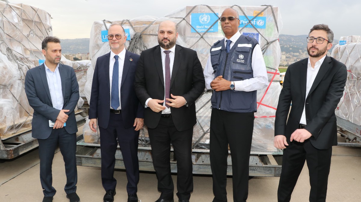 تسلم وزير الصحة العامة الدكتور ركان ناصر الدين في مطار رفيق الحريري الدولي شحنة مساعدات مقدمة لوزارة الصحة من كل من اليونيسف ومنظمة الصحة العالمية بحضور نائب المديرة التنفيذية لليونيسف لشؤون العمل الإنساني والإمدادات تيد شيبان، وممثل منظمة الصحة العالمية الدكتور عبد الناصر ابو بكر.