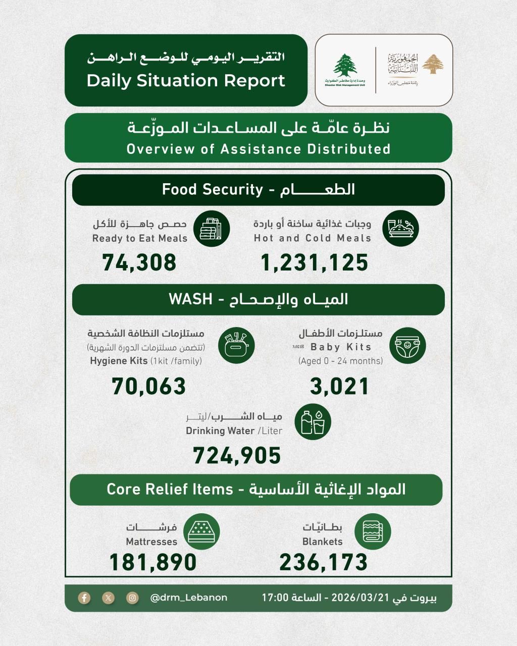 أعلنت وحدة إدارة مخاطر الكوارث في رئاسة مجلس الوزراء، في تقريرها اليومي (المرفق)، ما يلي: