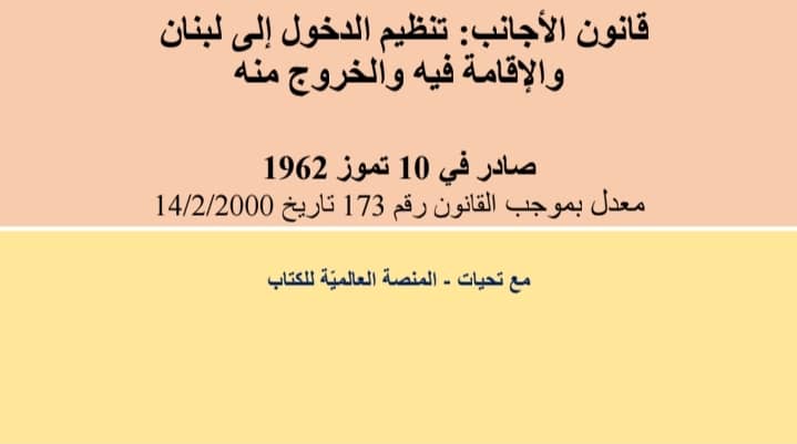 14/03/2026المنصة العالمية للكتاب, قانونقانون الأجانب: تنظيم دخولهم إلى لبنان وإقامتهم وخروجهم منهقانون الأجانب