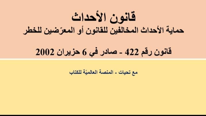 14/03/2026المنصة العالمية للكتاب, قانونقانون الأحداث رقم 422 صادر في 6 حزيران 2002قانون الاحداث رقم 442