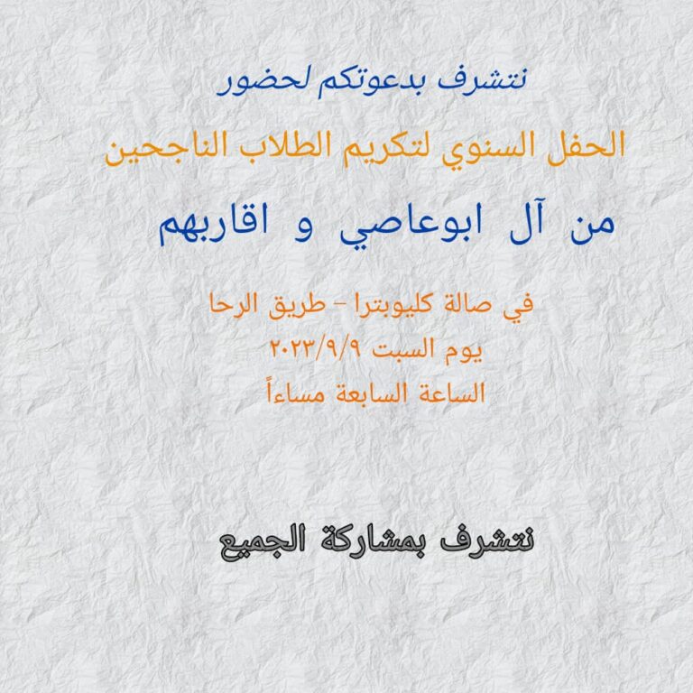 الحفل السنوي تكريم الطلاب الناجحين لأسرة أبو عاصي وأقاربهم في مدينة السويداء