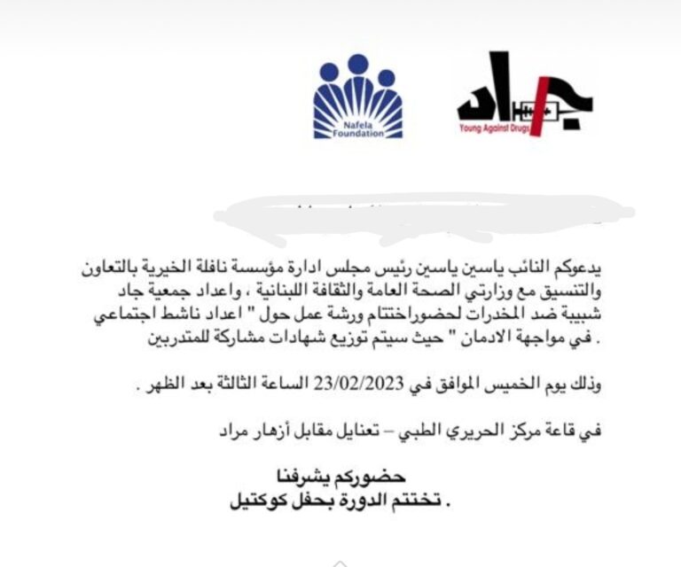 ورشة عمل حول “إعداد ناشط اجتماعي في مواجهة الإدمان” الخميس 23 الحالي في تعنايل