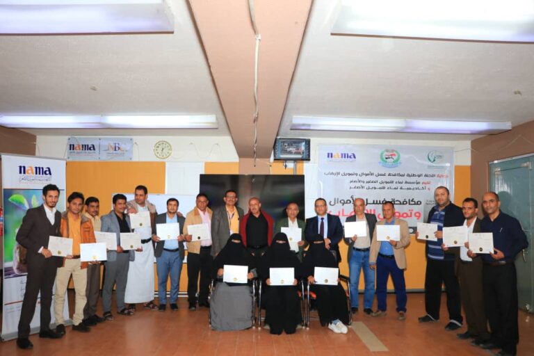 اليمن.. مؤسسة نماء وأكاديمية نماء للتمويل الأصغر تختتمان دورة مكافحة غسل الأموال وتمويل الإرهاب.
