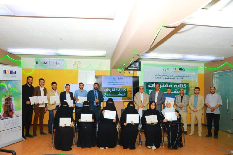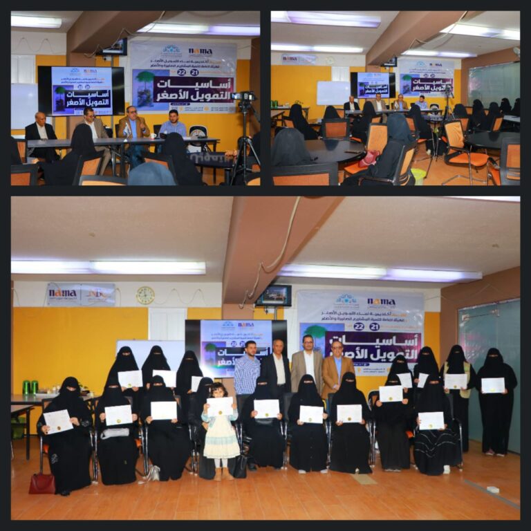 اليمن.. أكاديمية نماء للتمويل الأصغر بالتعاون مع الهيئة العامة لتنمية المشاريع الصغيرة والأصغر تختتم البرنامج التدريبي الـ 21 والـ 22 “أساسيات التمويل الأصغر” لـ 38 مشاركة